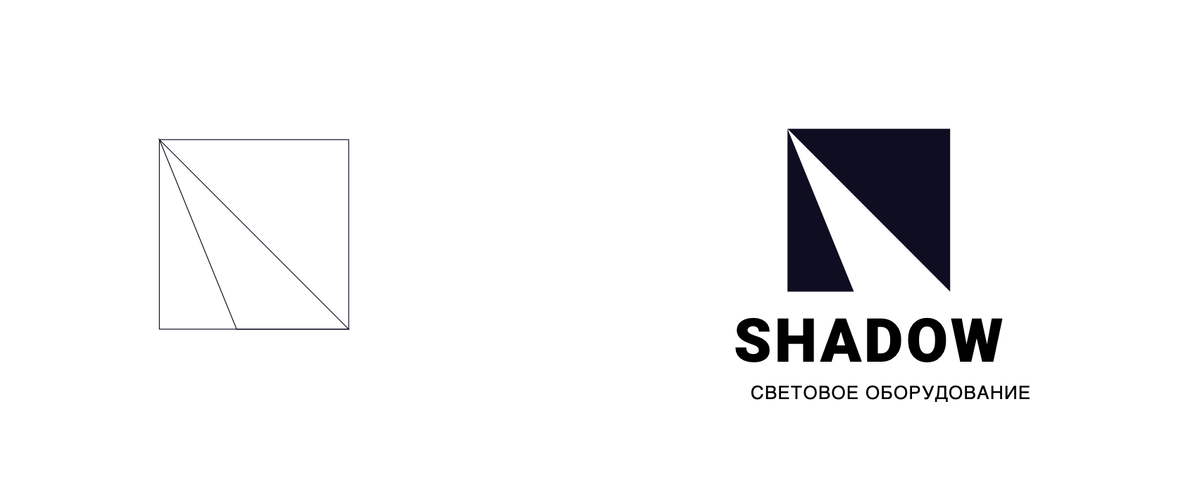 Задача перед нами стояла совсем не простая. Английское слово SHADOW переводится как тень. И именно этот образ должен был лечь в основу визуального кода бренда. Но как передать тень в однотонной графике, не прибегая к полу прозрачным эффектам и градиентам? От них мы сразу отказались, чтобы обеспечить универсальность и адаптивность логотипа. Он должен легко наноситься и одинаково чётко выглядеть на всех носителях — от вывесок и сувенирной продукции до бирок на оборудовании