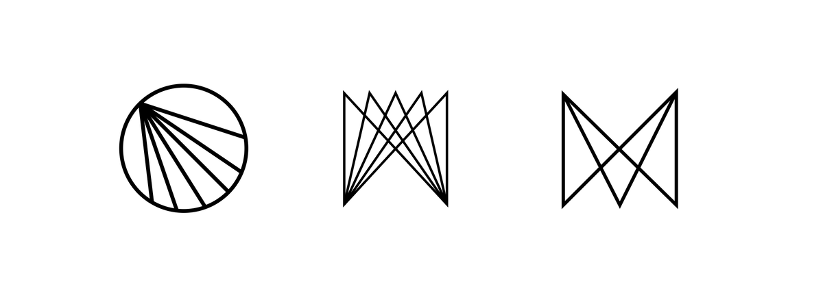 На следующем этапе мы начали экспериментировать с композицией: отрабатывали различные варианты пересечений лучей от нескольких источников света. Такая визуальная метафора отсылает к работе световых приборов на сцене и усиливает идею бренда — управление светом в пространстве, где он приобретает форму и направление