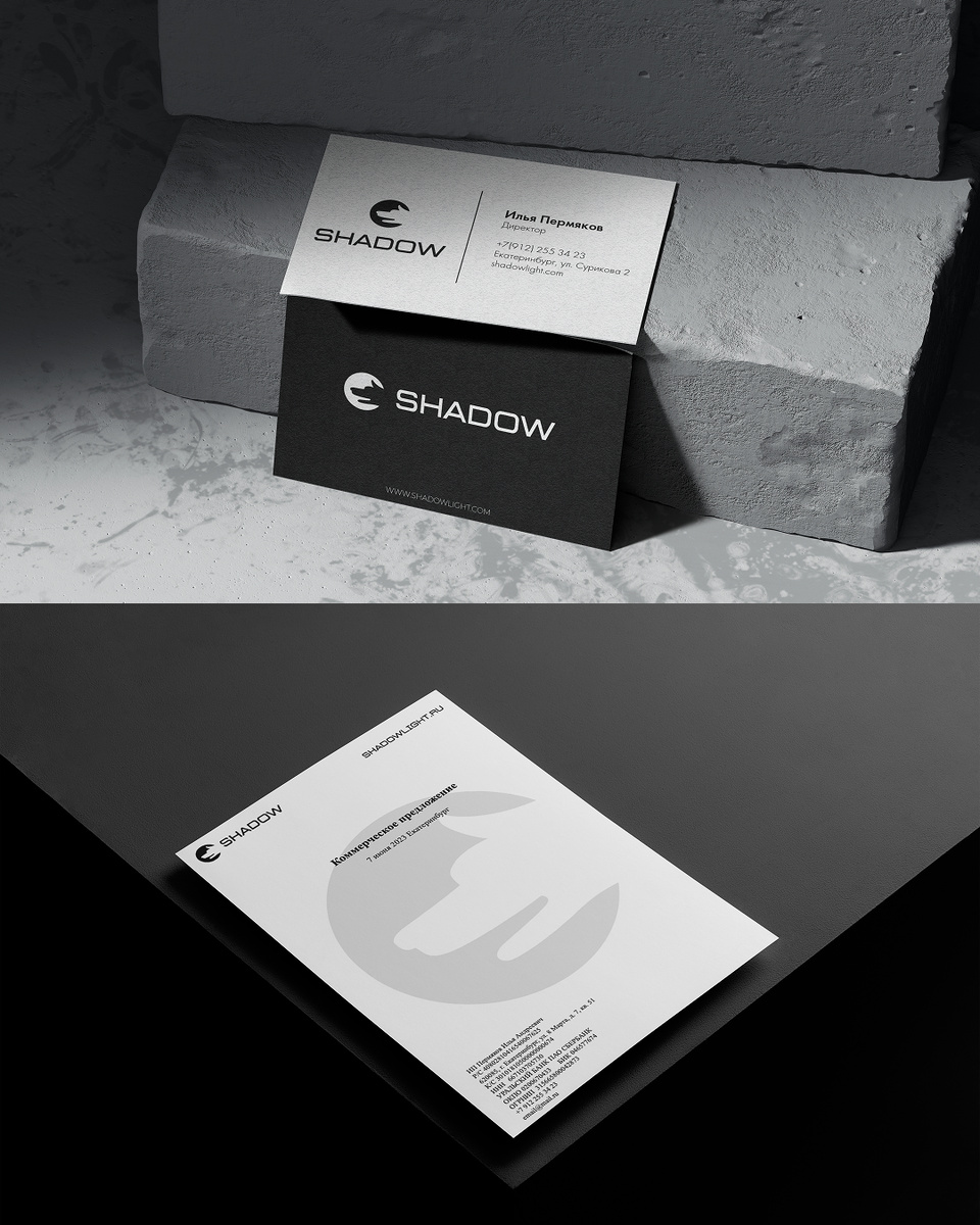В этом решении удалось точно передать суть бренда SHADOW — работу со светом в условиях полной темноты, что идеально отражает специфику работы сценического освещения