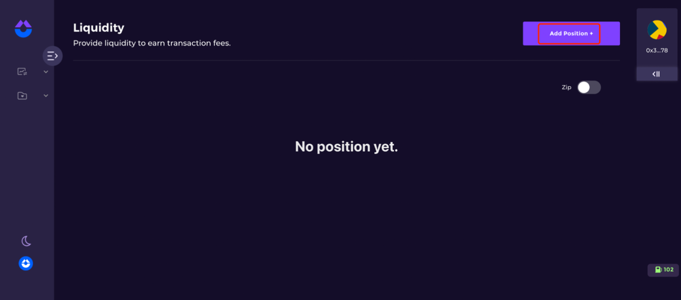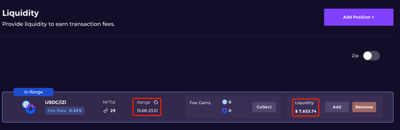 Ви можете відстежувати вашу позицію на сторінці Liquidity. Range показує поточний ціновий діапазон ліквідності. "Liquidity" вимірює значення поточної ліквідності.
