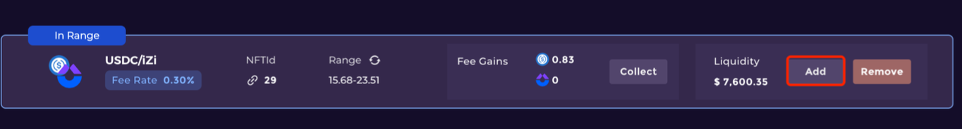 Виберіть кількість токенів, яку ви бажаєте додати, та схваліть USDC та iZi.