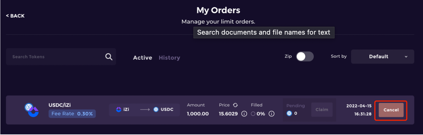 Натисніть кнопку «My Orders», у цій сторінці в режимі реального часу ви побачите ваші ордери (лімітна ціна, час замовлення, швидкість транзакції)