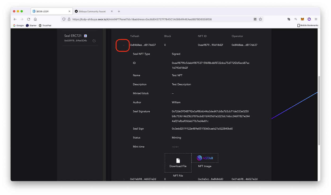 1. Шляхом натискання маленької кутової мітки перед кожним списком, ми можемо побачити докладну інформацію про раніше створену NFT.
