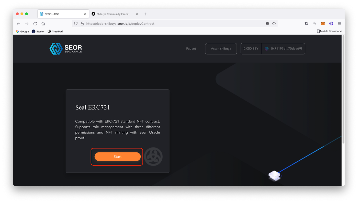 2. Натискаємо «Start» у модулі контракту Seal ERC721, щоб почати процес розгортання.