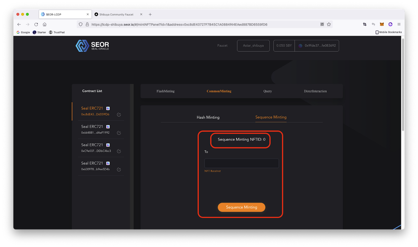 1. Натискаємо кнопку «Sequence Minting», щоб замінтити NFT по Sequence ID.