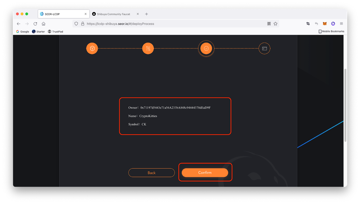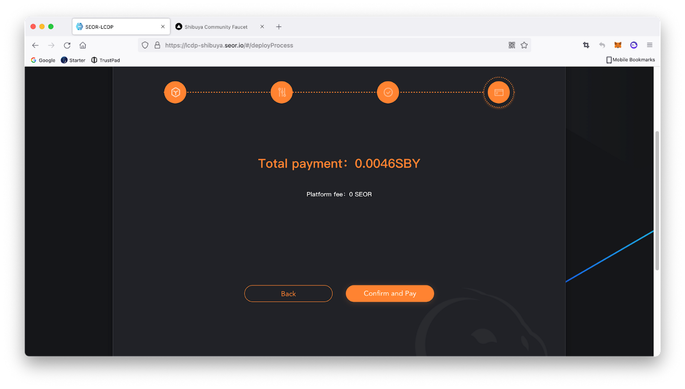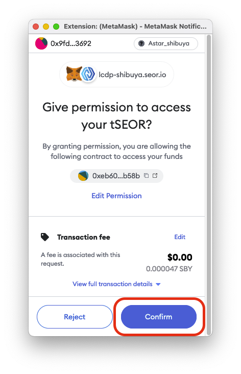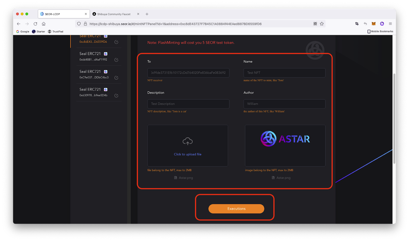Примітка. Цей процес коштує 5 тестових токенів SEOR.