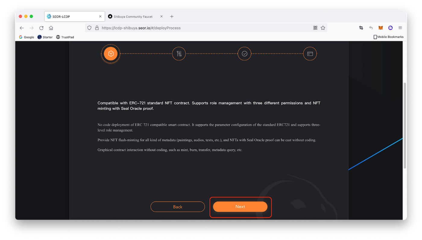 3. Першим кроком розгортання є докладний опис контракту. Натискаємо кнопку «Next», щоб перейти до другого кроку.