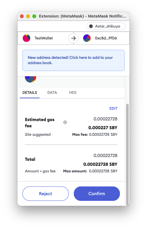 - Переходимо на сайт й натискаємо «Переключитися на тестову мережу Astar- shibuya».