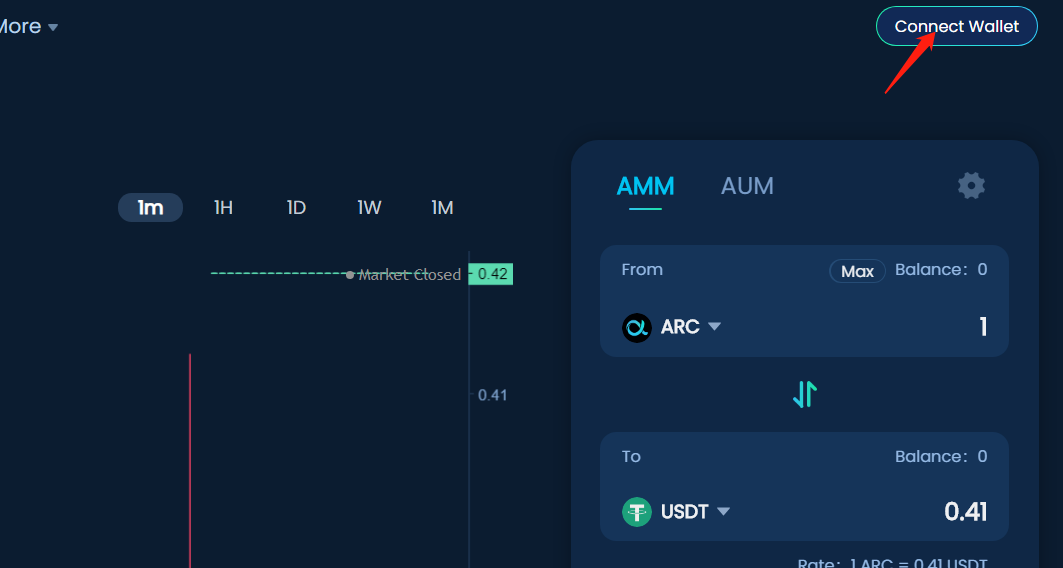 Переходим на http://arcdex.io/ и нажимаем “LAUNCH APP” и затем, нажимаем “connect wallet”