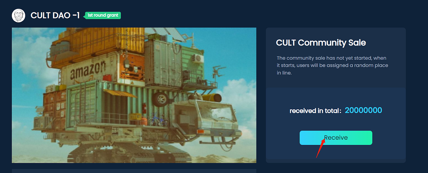 Шаг 7. Нажимаем “Receive”, чтобы получить ваши $CULT токены