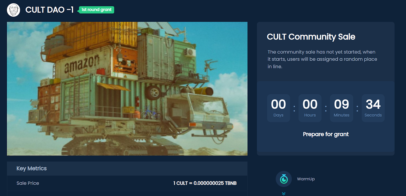 Шаг 3. Участвуем в $CULT Community Sale, чтобы получить токен. Ждём окончания обратного отсчёта