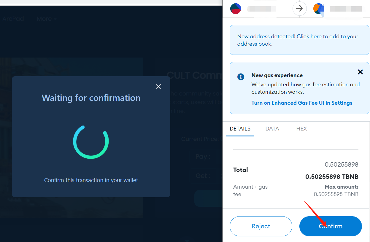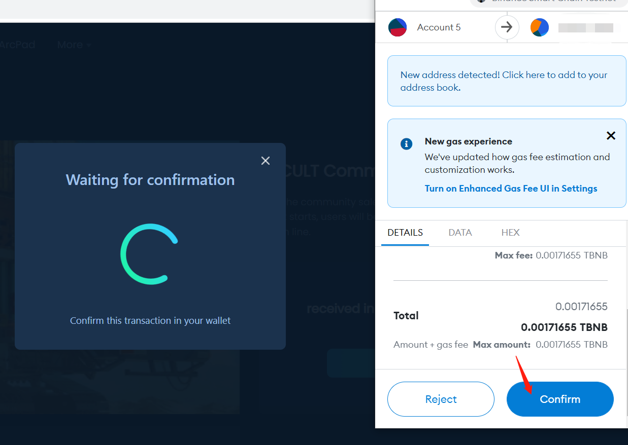 Шаг 3: Подтвердите транзакцию в Метамаске.