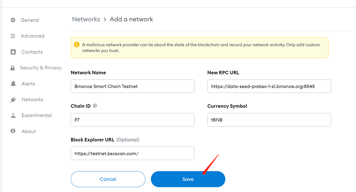 Шаг 2. Добавьте Binance Smart Chain Testnet