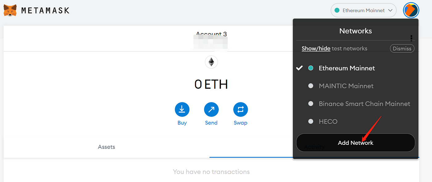 Шаг 1. Зайдите на свой кошелек и нажмите “Добавить сеть”