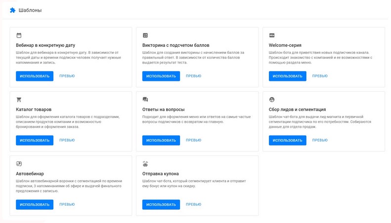 4) Далее после регистрации у вас будет меню на котором можно выбрать какого бота именно вам нужно создать для своего клиента. Вы можете выбрать уже почти готового бота, в котором останется лишь его не много изменить с помощью нейронки, прикрепить сообщество вашего клиента и нажать старт.
