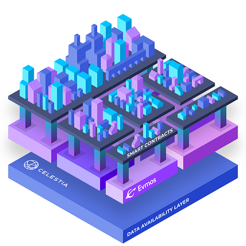 Celestia работает с Evmos над созданием оптимального уровня расчетов для сверток EVM . Свертки EVM позволяют пользователям выполнять транзакции вне сети с более низкой комиссией за транзакцию, при этом транслируя данные транзакции на уровень консенсуса и доступности данных в цепочке для обеспечения безопасности. Накопители предлагают разработчикам и конечным пользователям масштабируемость, поскольку транзакции выполняются вне цепочки уровня 1 (L1), уменьшая перегрузку.