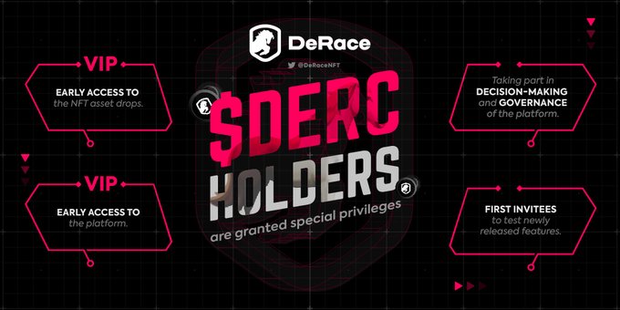 DeRace - это полноценная экосистема скачек NFT, где вы можете участвовать в скачках, разводить лошадей NFT с уникальными характеристиками, проводить гонки на собственном ипподроме NFT и зарабатывать на этом прибыль во внутреннем токене $DERC: