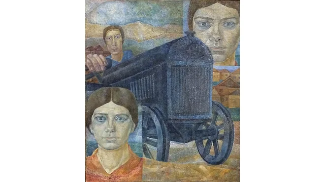 Однако и женщины уже тогда рисовали про себя. Здесь стоит обратить внимание на работу «Автопортрет (Трактористка)» Прасковьи Важновой. Художница была представителем творческой группы «Мастера аналитического искусства», у которых главной темой работ стало отображение социального бытия человека того времени с «оттенком сюрреалистического отчуждения». На картине запечатлена трактористка в момент своей работы — сбора урожая на поле. Полотно носит документальный характер и сохраняет образ тяжелого женского труда.