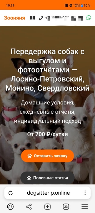 Сейчас пиковый сезон по передержке собак — много заявок, так что сайты пока не раскручиваю. Главное — они работают.
