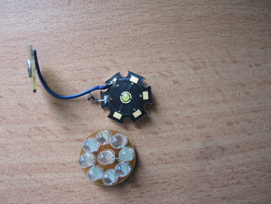 6. Припаиваем, соблюдая полярность, проводки к блоку светодиодов.