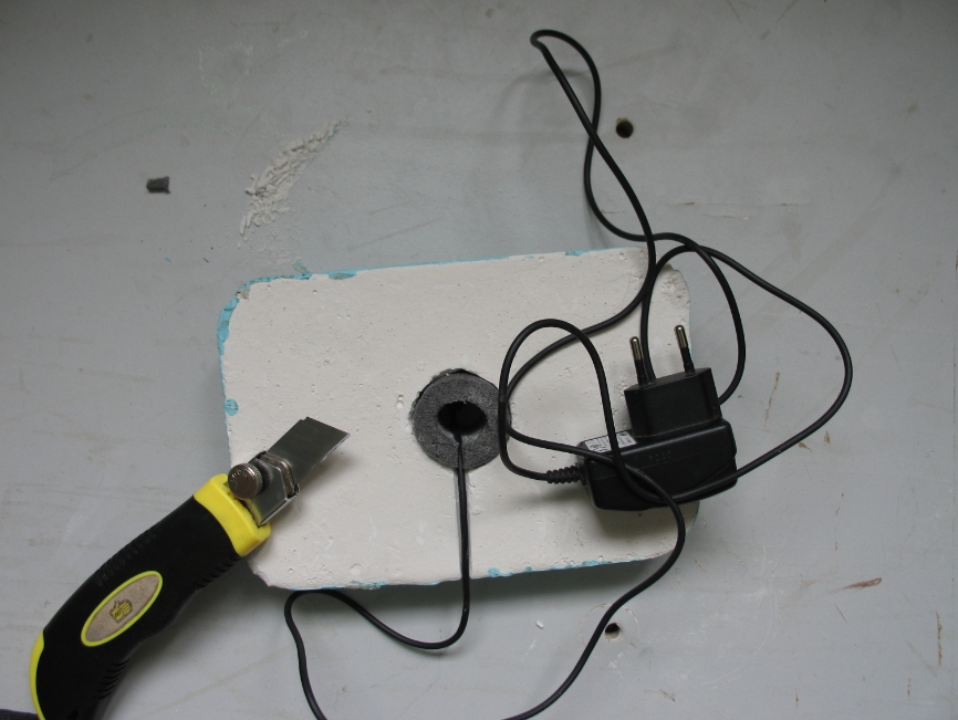 8. Прорезаем канавку на нижней части гипсовой подставки.