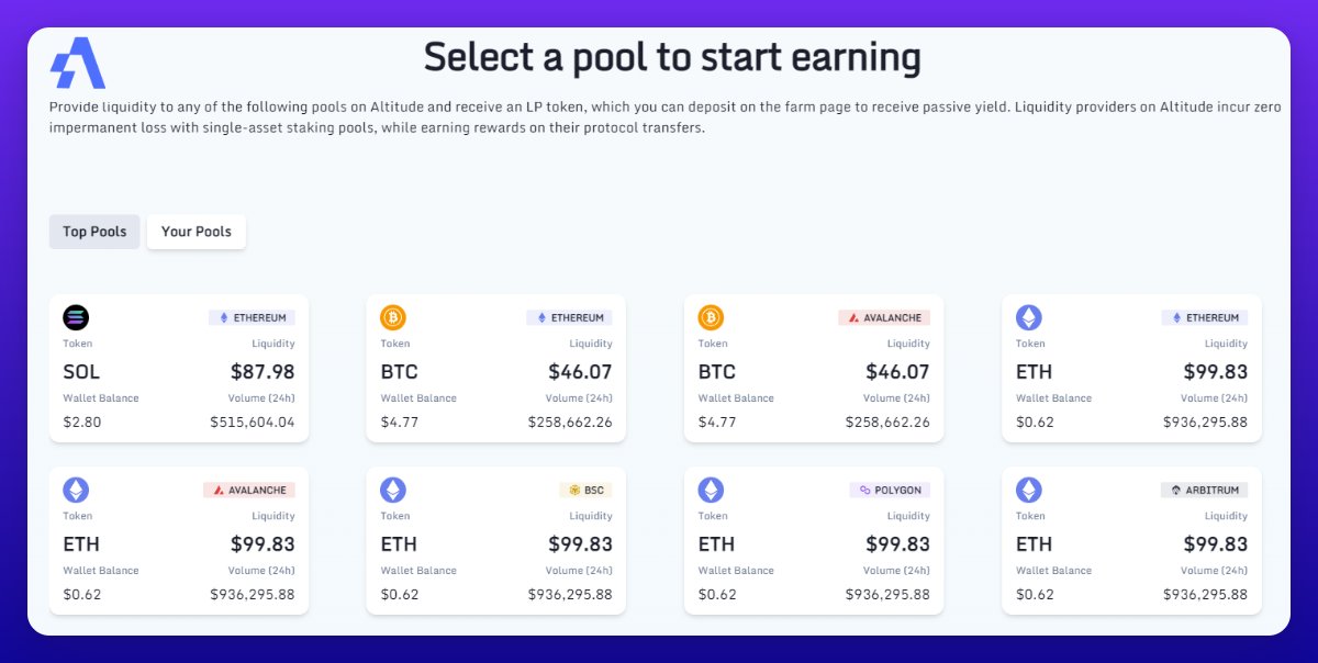 Вместо использования унифицированных пулов ликвидности Altitude будет иметь один односторонний пул ликвидности на каждой подключенной сети.
