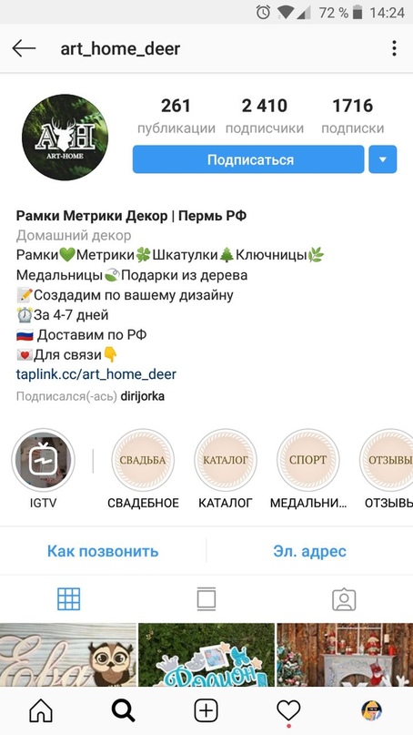 Работа над аккаунтом @art_home_deer началась в середине августа 2018 года. Аккаунт велся в течение месяца до середины сентября 2018 года. За это время мы успели поднять активность пользователей на аккаунте, увеличить количество живых подписчиков на 200 человек, разработали индивидуально настроенный рубрикатор постинга, привлекли новых клиентов. Люди стали интересоваться продукцией в комментариях и директ, начали поступать первые заказы в профиль средний чек которых составлял 1000 р.
