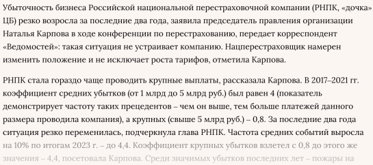 "Совет директоров Банка России утвердил условия, при которых страховые компании могут быть освобождены от вмененной по закону обязательной передачи 50% рисков Российской национальной перестраховочной компании (РНПК)." https://www.interfax.ru/business/834309