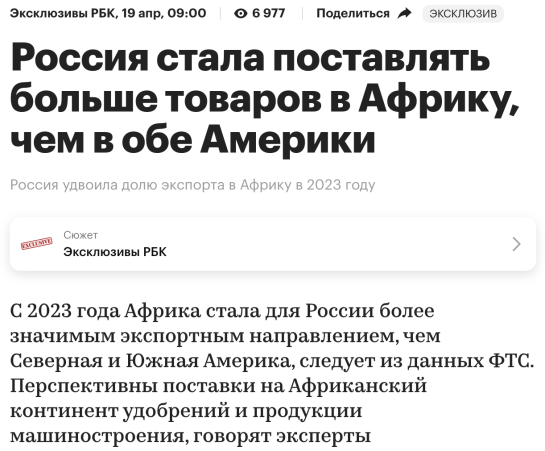 В-третьих, вот новость, имеющая прямое отношение к экспорту в Африку.