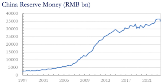 Если сравнить с США, где правительство не может заставить банки кредитовать, то в США баланс ФРС вырос в разы за счет QE и объем резервов банков вырос соответствующе. В Китае денежное предложение не растет, утешает только, что в Китае жесточайшие ограничения на вывоз капитала (это также будет актуально для россиян).