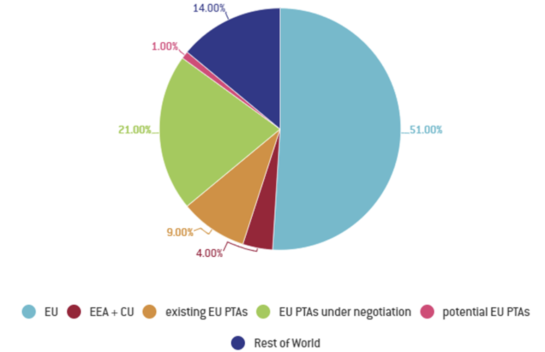 Далее по-настоящему поразительная круговая диаграмма демонстрирует, что до Brexit доля торговля Англии со странами