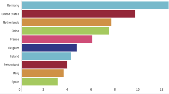У Китая эта доля намного больше, чем у США, а у России она была больше, чем у Китая. Больше чем у Германии наверное эта доля уже не бывает, однако у Японии или у Ю Кореи она тоже очень существенная (неохота проверять сейчас).