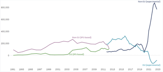 Однако на практике Brexit отнюдь не уменьшил количество мигрантов, а по-видимому просто открыл новые каналы для "параллельного импорта":