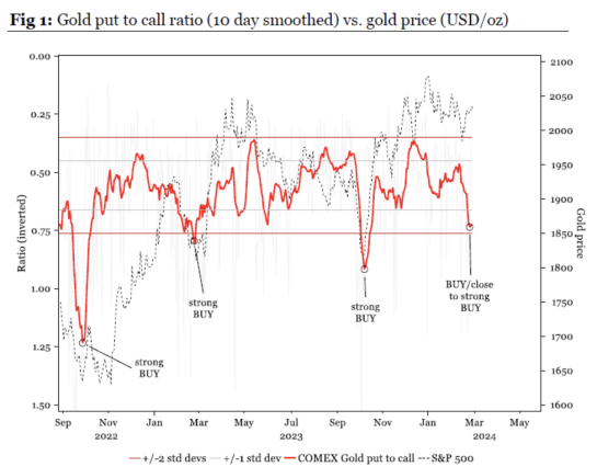 Отношение путов к коллам голосует в пользу лонга по золоту:
