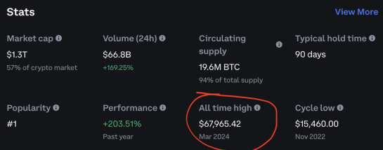 Кстати, спотовый биткоин-ETF потерял $140 млн в пятницу, так что рост до рекорда нельзя объяснить притоком свежих денег...