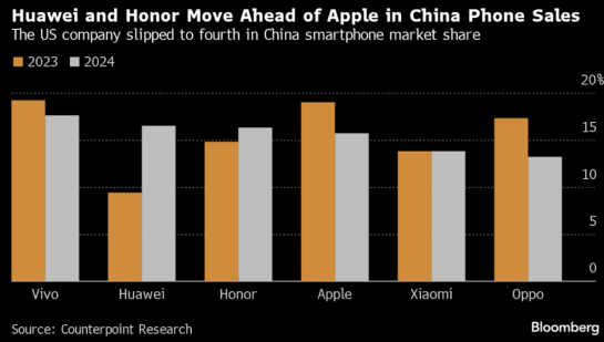 Продажи iPhone в Китае снизились на 24% за шесть недель 2024 года... а в 2023 году Apple зарабатывала 20% всей выручки в Китае...
