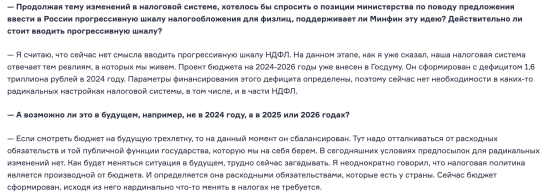 Власть обещает зафиксировать налоги до 2030, но выше мы прочитали, что 26 октября 2023 года чиновник минфина сказал ясно: