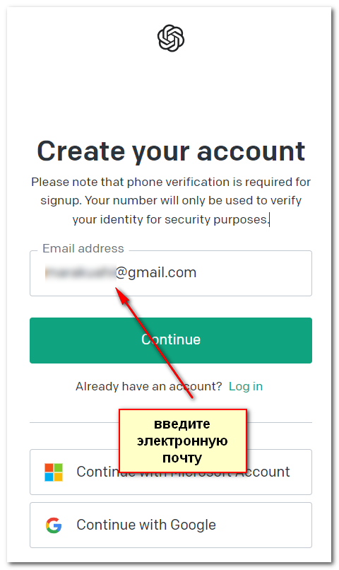 9) Вернитесь в форму регистрации ChatGPT и вставьте скопированный код.