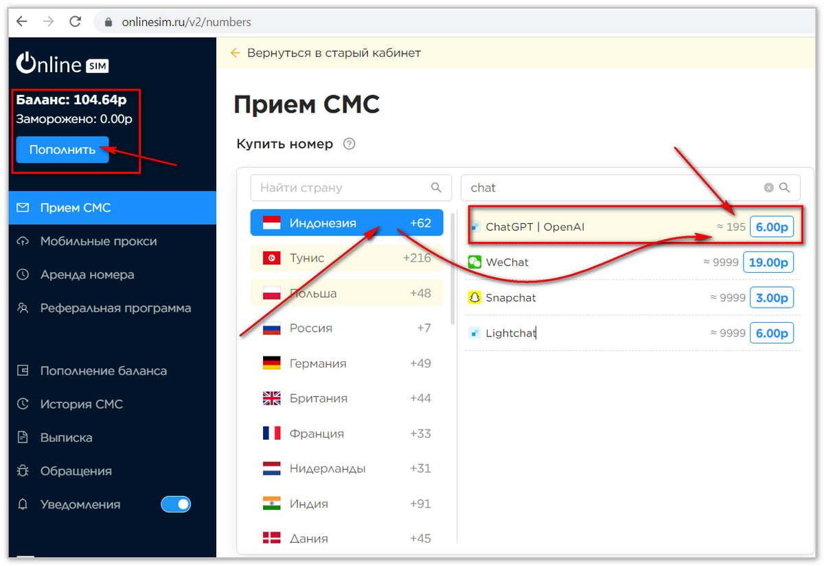 3. Сервис onlinesim.ru для покупки зарубежного номера.