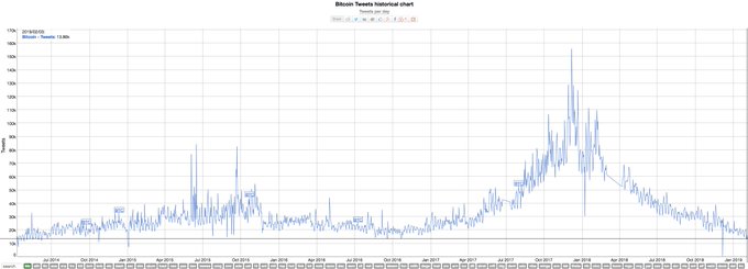 Tweets about Bitcoin at the same level as 2014 and lower than at any point in 2016, like nothing has changed.