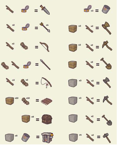 Рецепты для изготовления других предметов показаны на рисунке ниже.