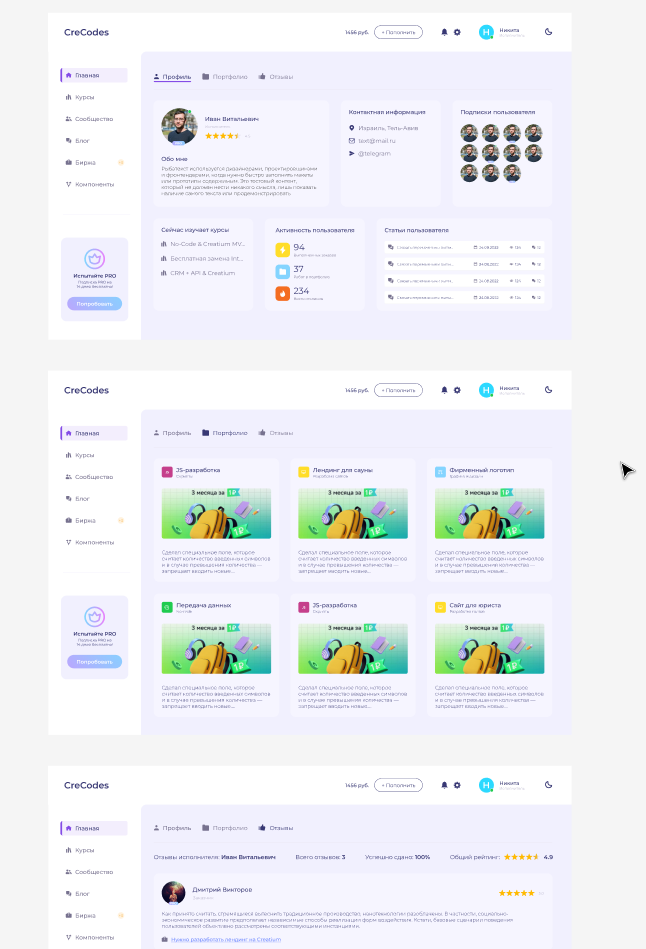 Начнем по порядку, а именно со страницы пользователя для сервиса Дмитрия, которая была благополучно сделана, но, увы, не оплачена: