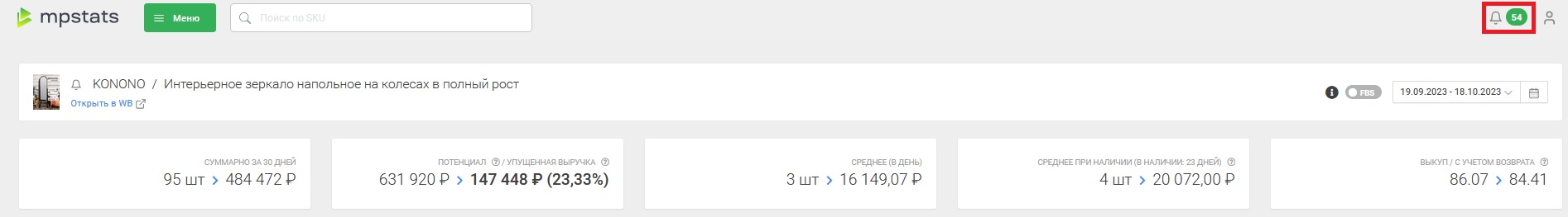 Зайди в карточку товара на MPSTATS и нажми на колокольчик.