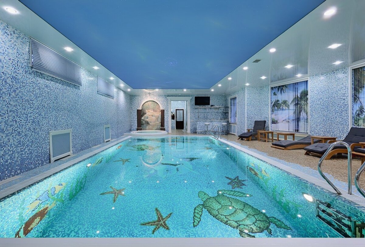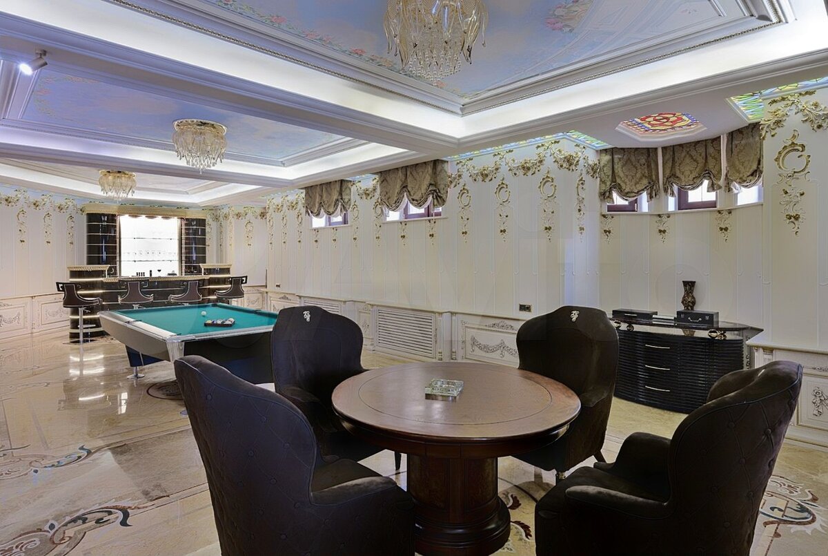 Спа-центрa, большой бассейн, джакузи на 4 человека, сауна, спортзал, бар. Всё, как у всех на Рублёвке. Обычный дом. Только на миллиард.