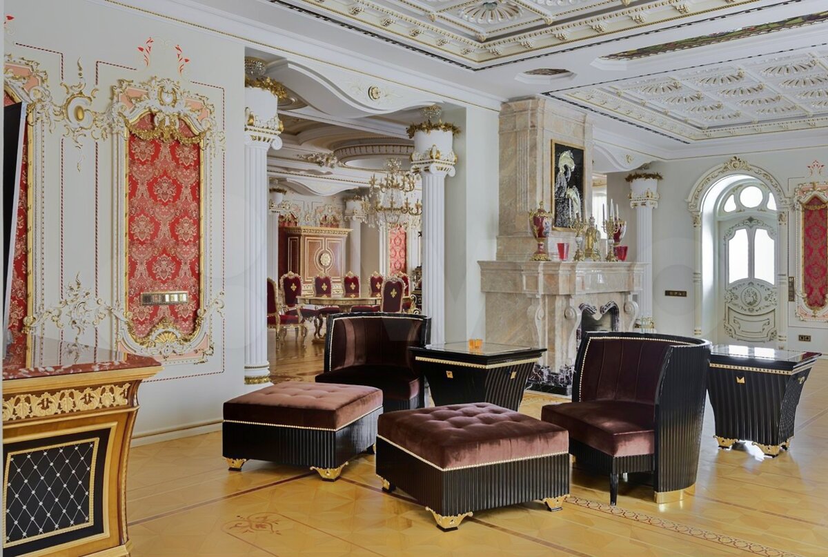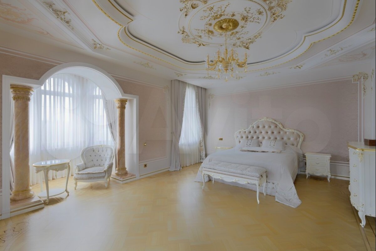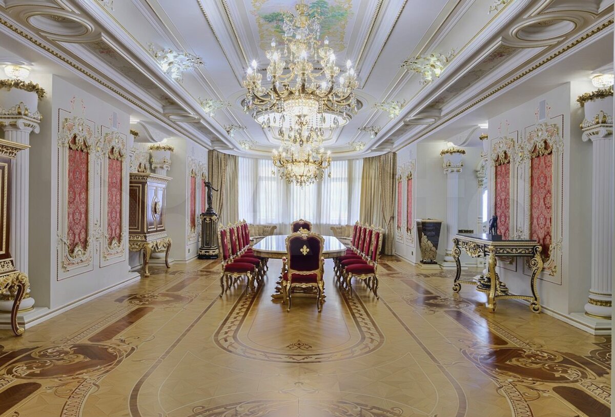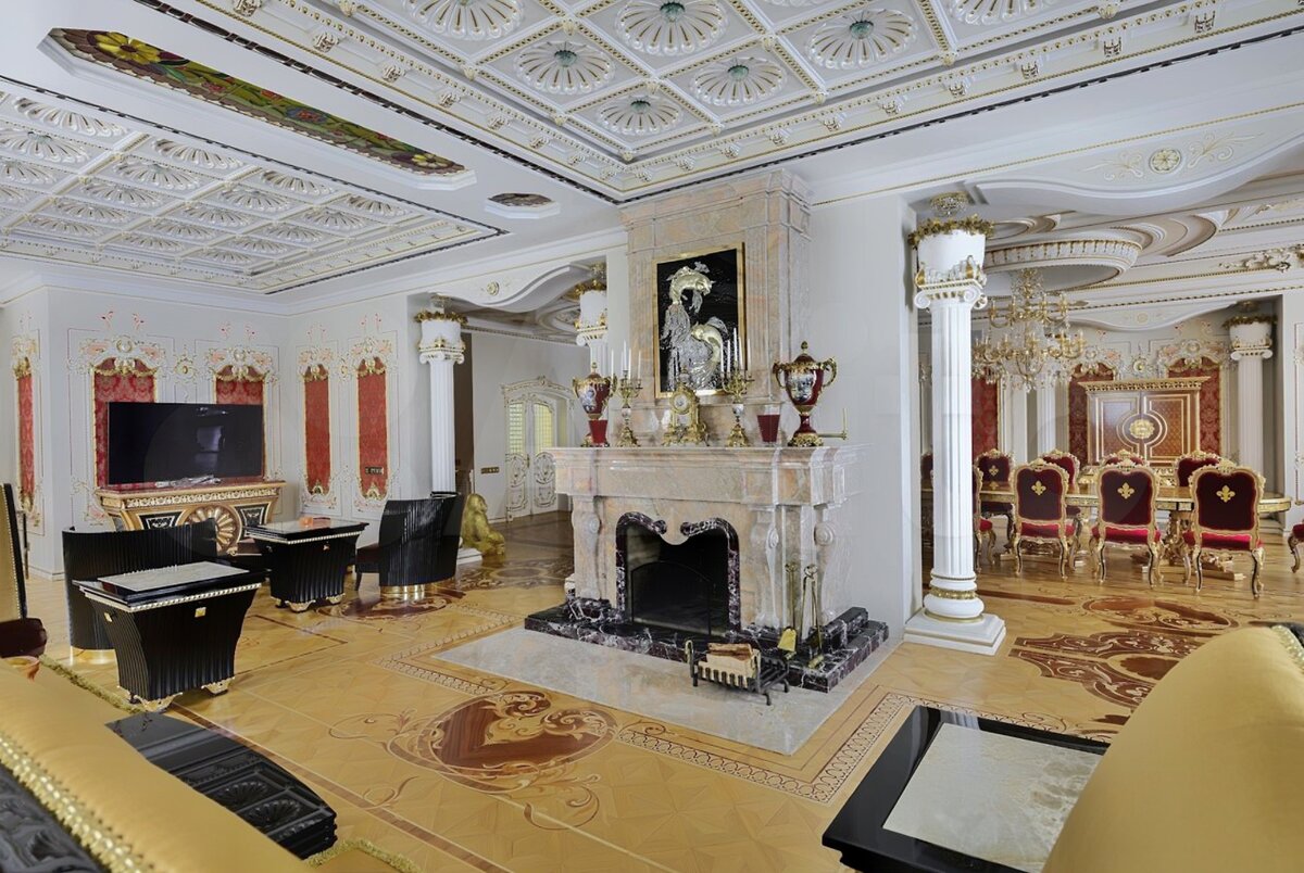 Но вернемся к дому на Рублевке. Это обычный рублёвский усадебный комплекс домов с восточным колоритом на общей площадью 2500 кв. м. на видовом участке 77 сотки. Отделка высочайшего уровня ручной работы с использованием сусального золота и только дорогих натуральных материалов. Это же Рублёвка. Тут иначе нельзя. Миллиард уже чувствуете? Не спешите, сейчас вы его увидите.