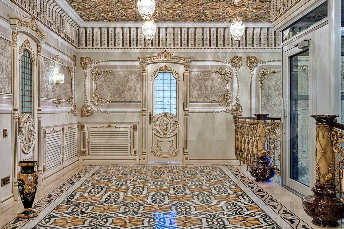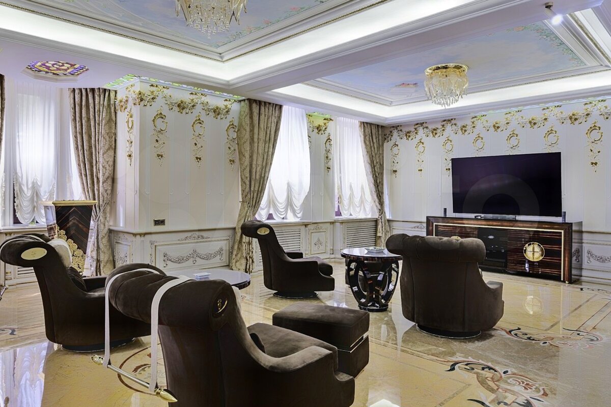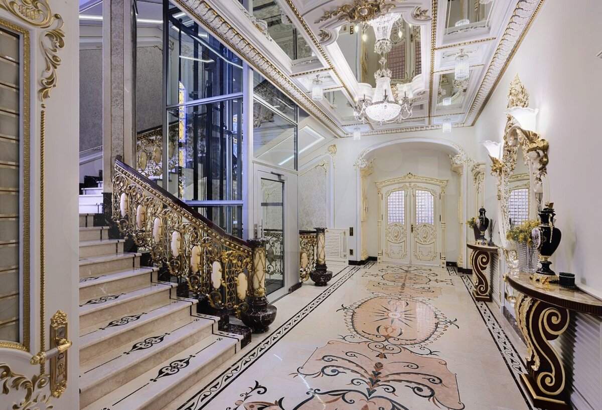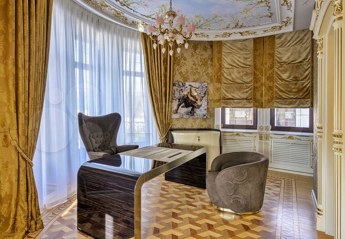 Но вернемся к дому на Рублевке. Это обычный рублёвский усадебный комплекс домов с восточным колоритом на общей площадью 2500 кв. м. на видовом участке 77 сотки. Отделка высочайшего уровня ручной работы с использованием сусального золота и только дорогих натуральных материалов. Это же Рублёвка. Тут иначе нельзя. Миллиард уже чувствуете? Не спешите, сейчас вы его увидите.