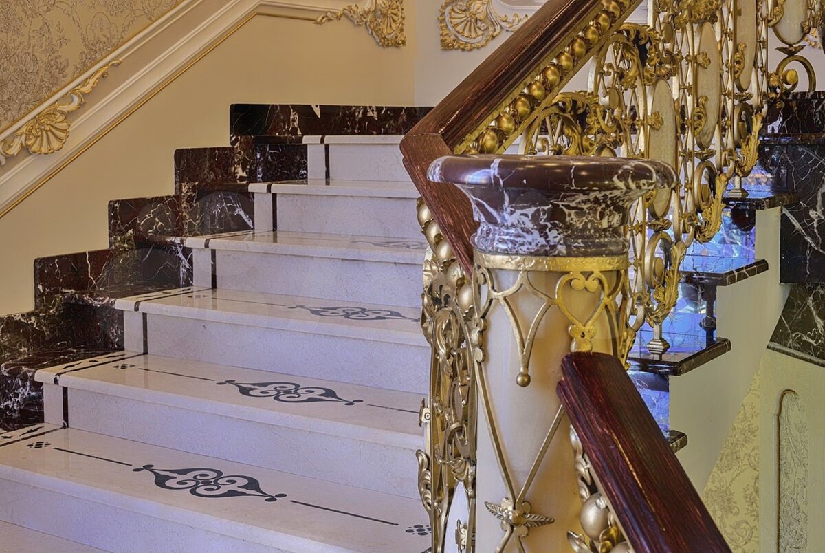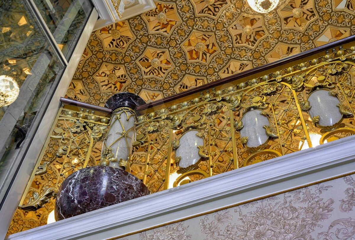 Поднимемся на самый верхний этаж, чтобы насладиться лестничными пролётами из сусального золота. Ну, вы чувствуете миллиард?