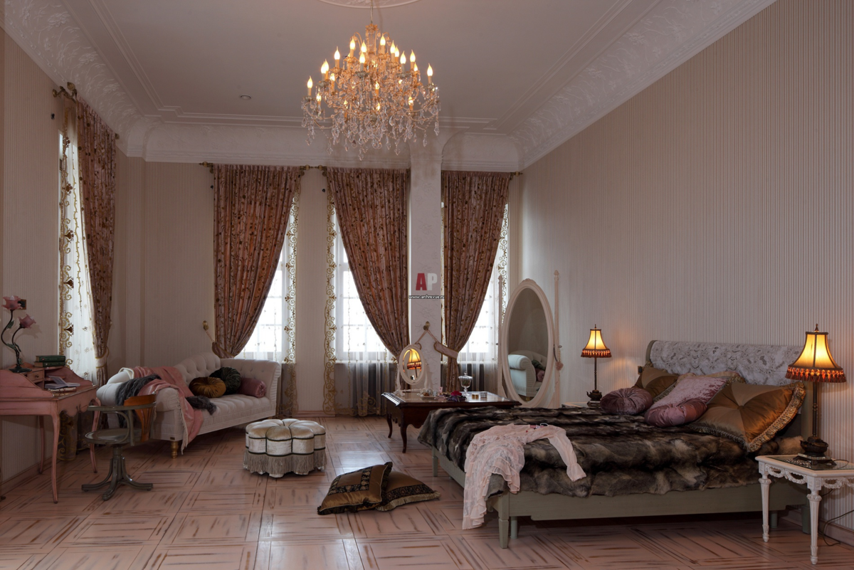 Спальня молодожёнов - святая святых данного сооружения. Скромность и изысканность весьма характерны для ложи Примадонны. Тут всё просто и скромно, как в любом замке или дворце.