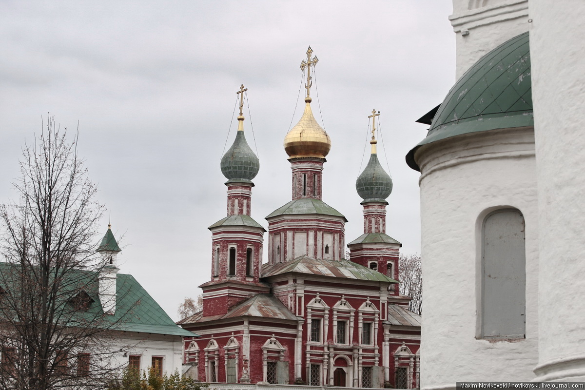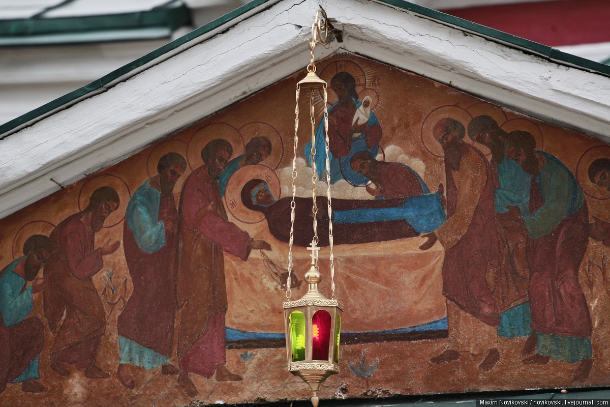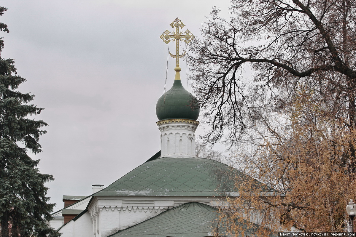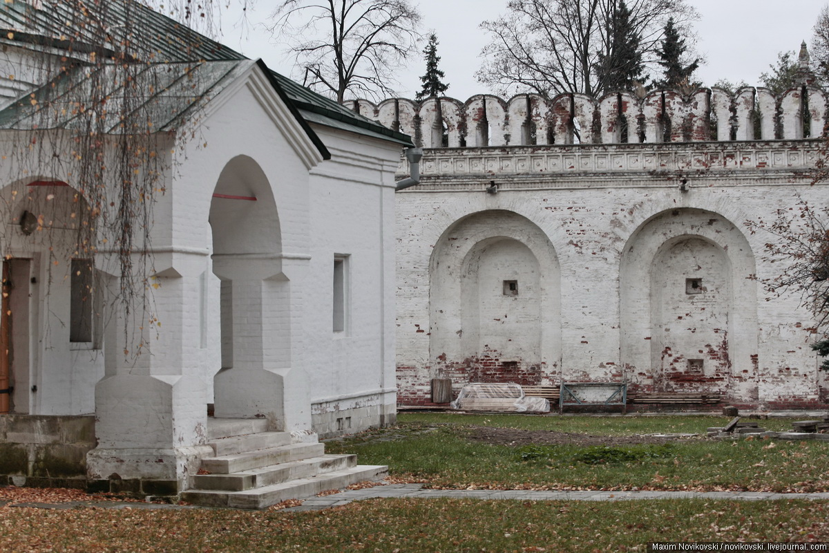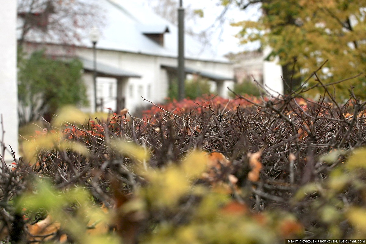 В этот период времени в монастыре всё в ёлочках. Но гнетущее состояние присутствия кого-то постоянно напрягает. Стоит обернуться - и за тобой кто-то наблюдает и прячется в узких хилых оконцах местной архитектуры. Не зря про это место в Москве ходят нехорошие слухи, тут всё мистически странно.