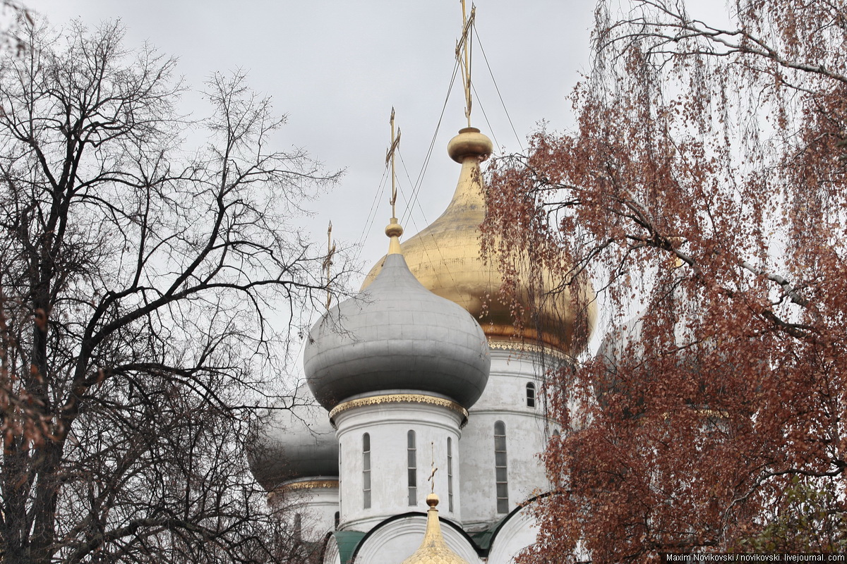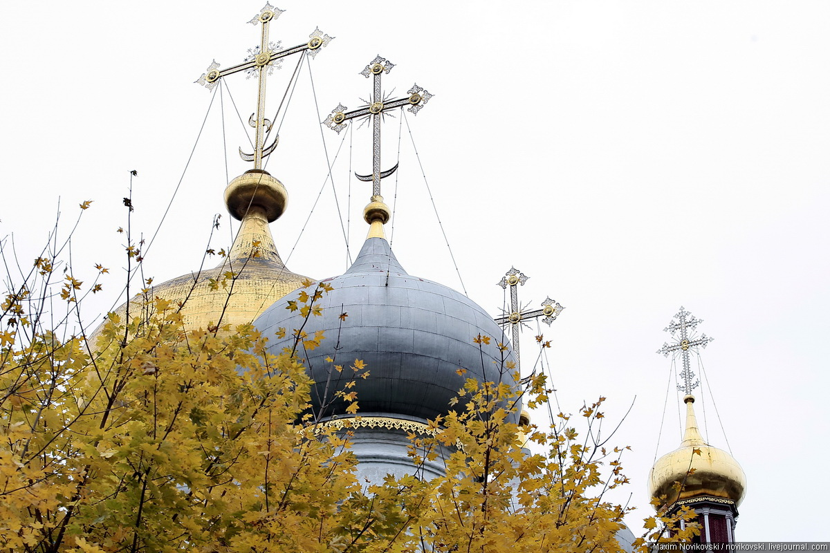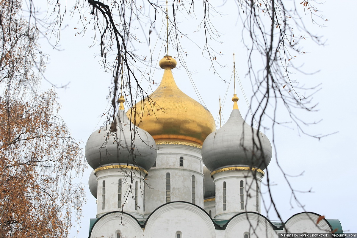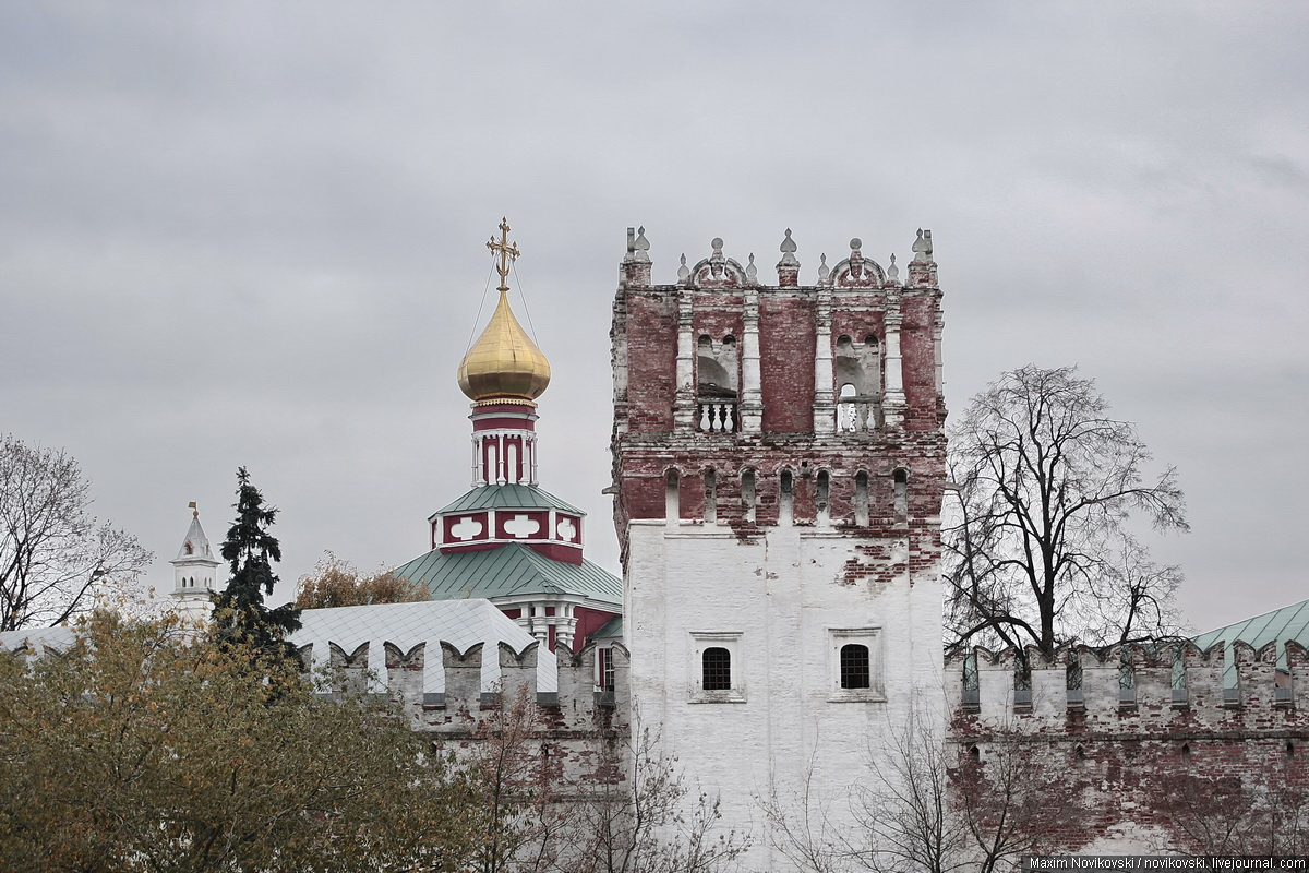 Не смотря на всё это, я решил прогуляться по Новодевичьему монастырю, прихватив с собой пару профпригодных для погоды фотокамер для съёмки. Золотая осень же. И вот что из этого вышло.